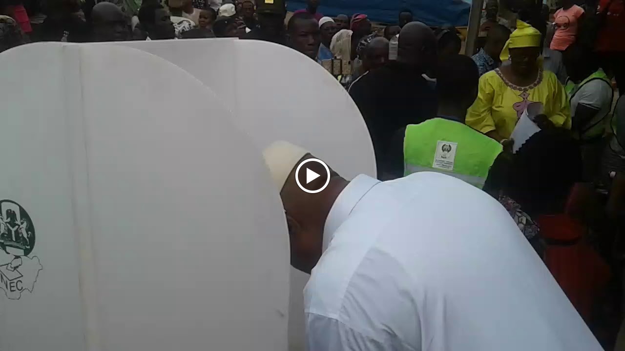 Former Governor of Oyo State, Otunba Adebayo Alao-Akala cast his vote at ward 10, Unit 13, Sabi Taara, Ogbomoso North Local Government.